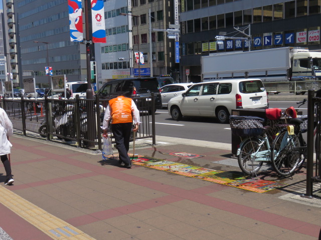 - エリア内の放置自転車解消や道路の美観維持などを目的とした啓発活動を地域の方々と協働して、自転車への絵符付けや清掃活動を行っています。