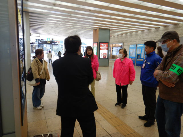 駅構内に集まったキャンペーン参加者