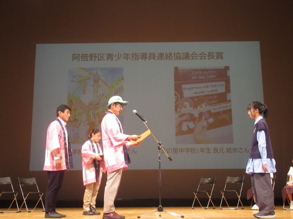 阿倍野区青少年指導員連絡協議会文化部長賞