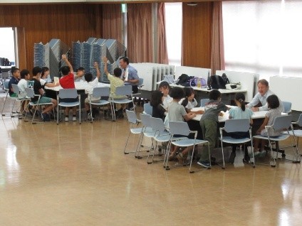 グループに分かれて、講師や友達と英語で自己紹介や好きなスポーツ・食べ物、友だちのことなどを楽しく学び合いました。