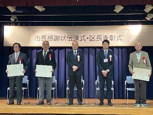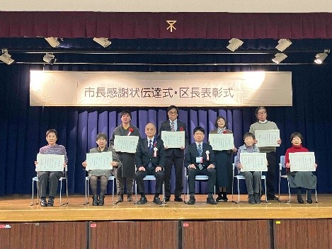 道路・河川・公園等における保全、美化運動功労者及び資源集団回収功労団体にかかる市長感謝状伝達式並びに区長表彰式を行いました。