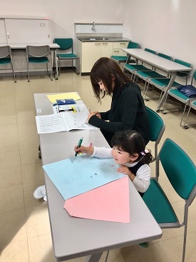 お母さんは真剣に問題に取り組んでおられ、お子さんはスタッフとお絵かきなどをして楽しんでくれていました。