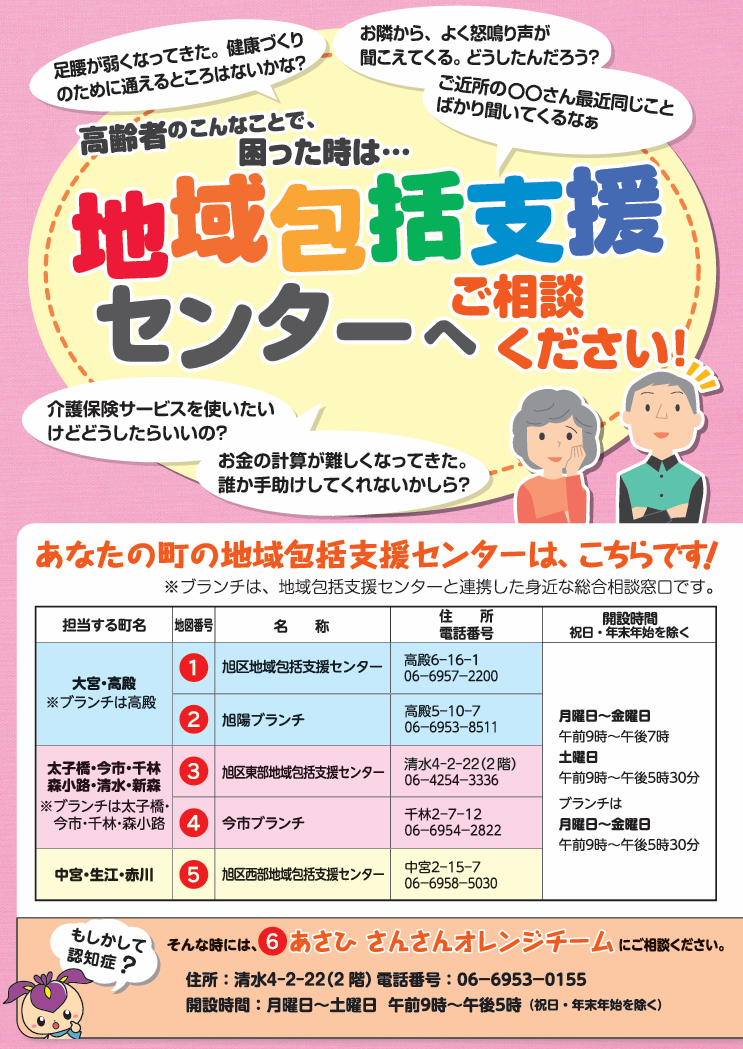 高齢者に関するご相談は地域包括支援センター・総合相談窓口(ブランチ)へ