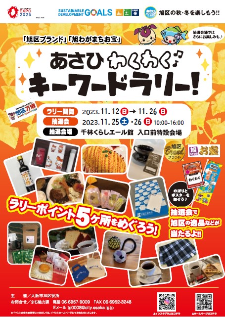 11月12日(日曜日)から11月26日(日曜日)まで、旭区の魅力を再発見していただける「あさひわくわく♪キーワードラリー!」を開催します。