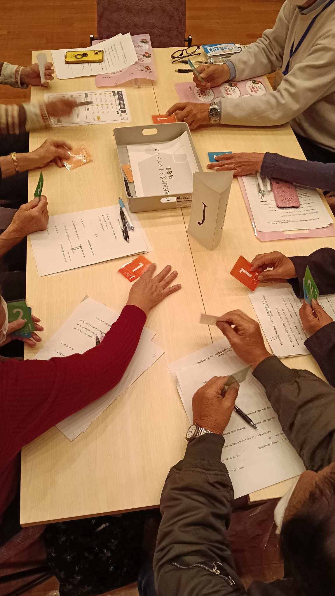各地域の皆さんは、防災安全課職員による防災に関する取組の紹介を熱心に聞き入っておられ、その後、南海トラフ巨大地震と津波に関する具体的な行動について、クイズ形式のカードゲームを活用し、非常に和気あいあいとした雰囲気の中で、学習を行っていただきました。