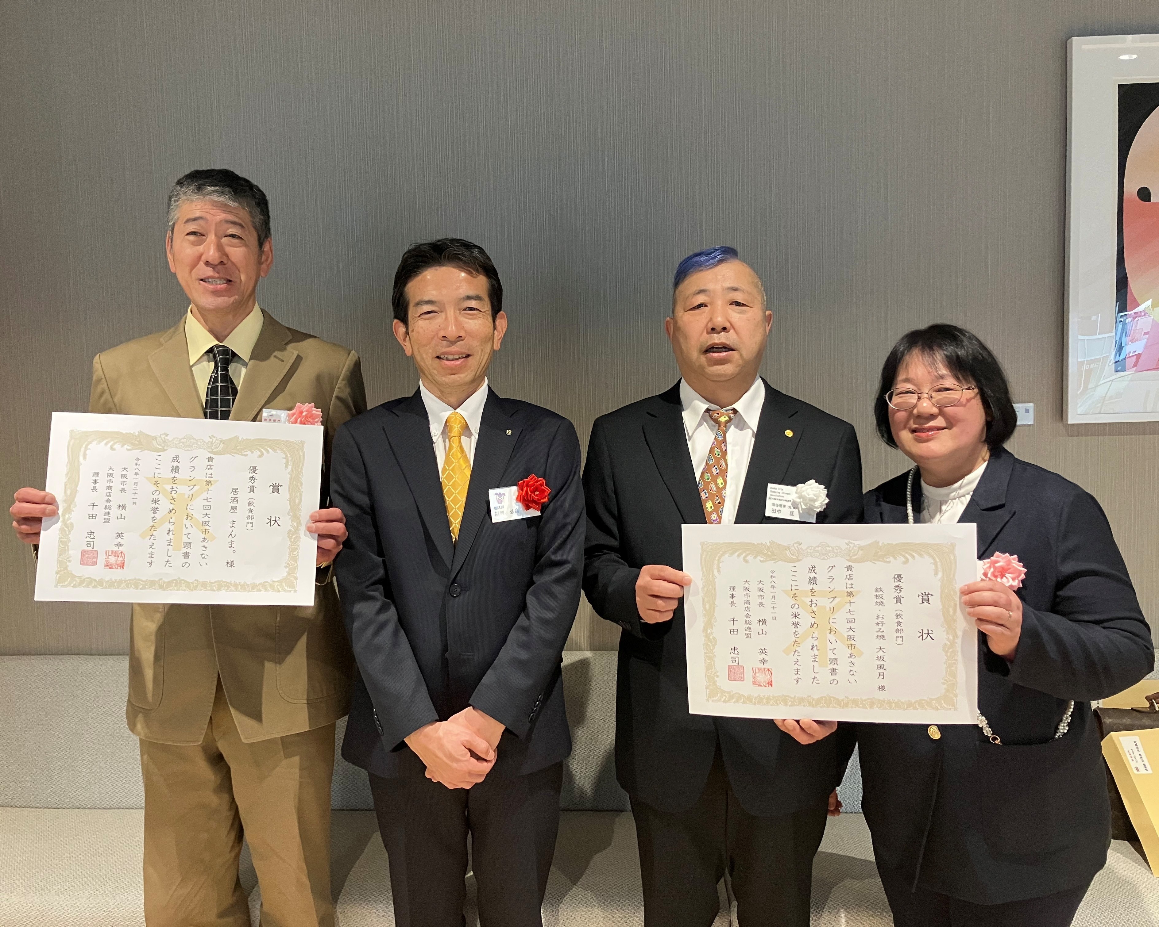 大阪市全体における優秀賞44店舗のうち、旭区からは、森小路商店会の「鉄板焼・お好み焼大坂風月」さん、今市商店街の「居酒屋 まんま。」さんがその栄誉に輝き、令和8年1月21日にホテルロイヤルクラシック大阪で表彰式が開催されました。
