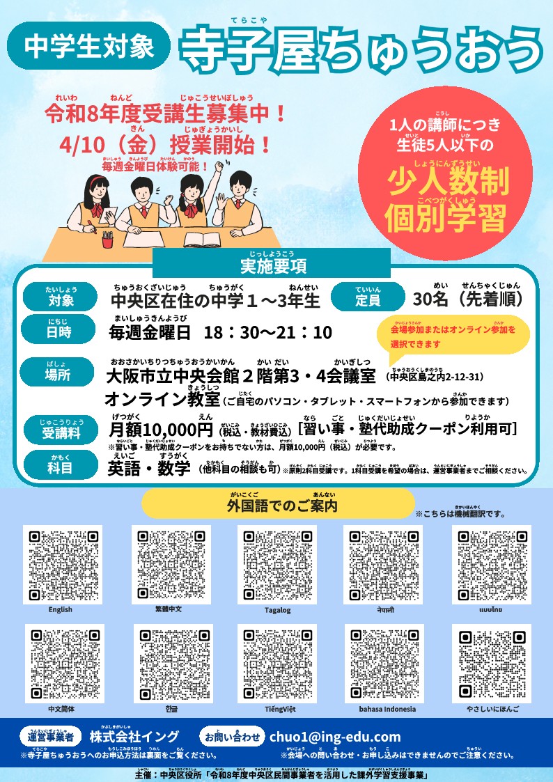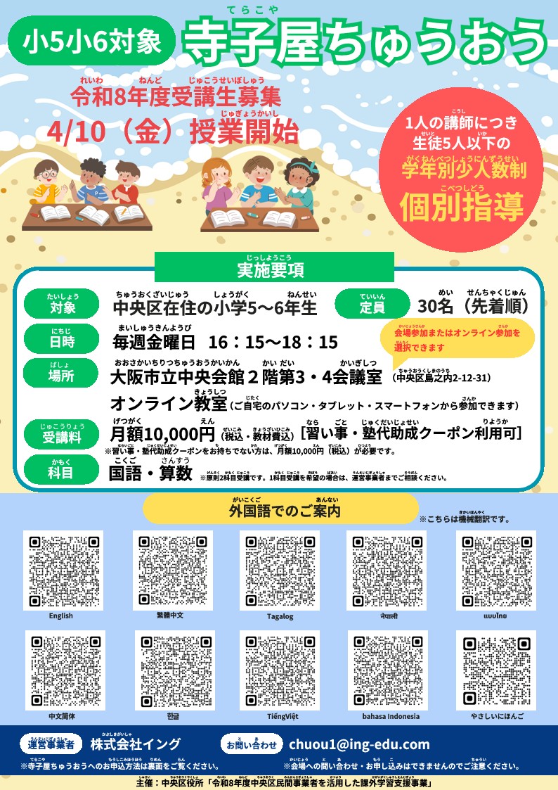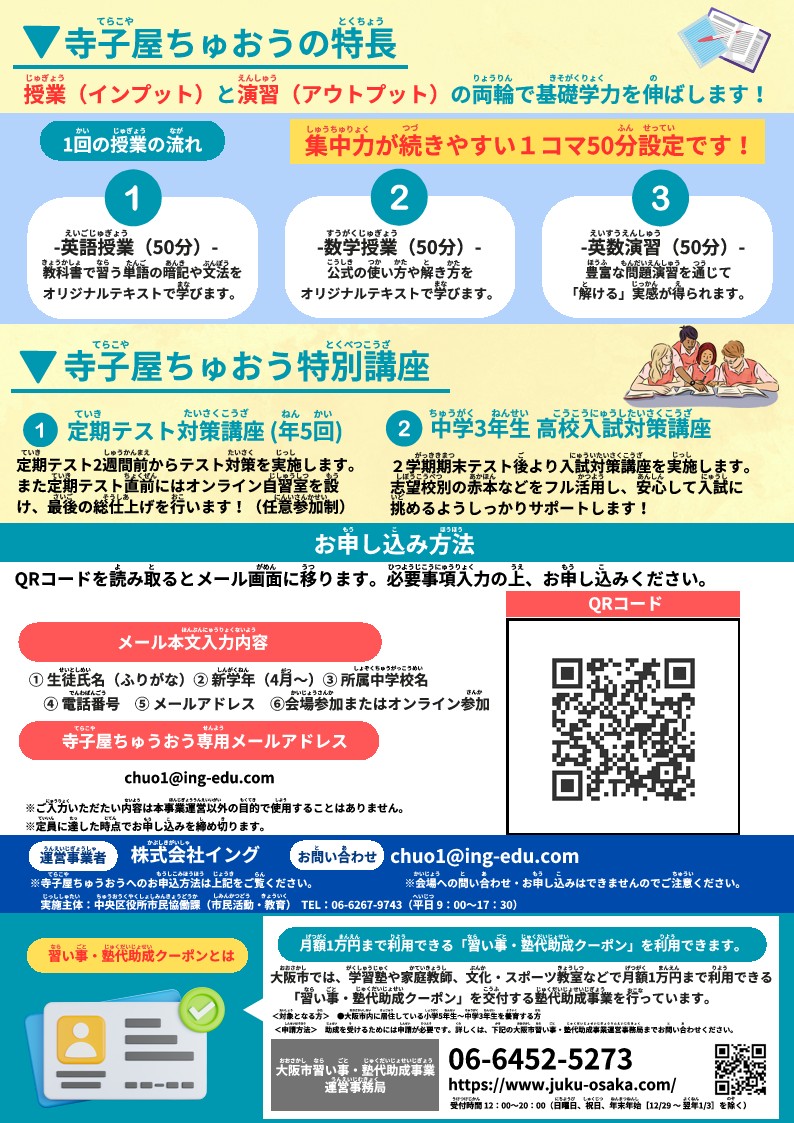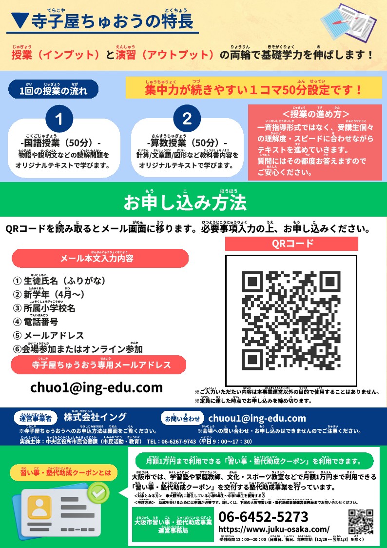 寺子屋ちゅうおうのくわしい内容