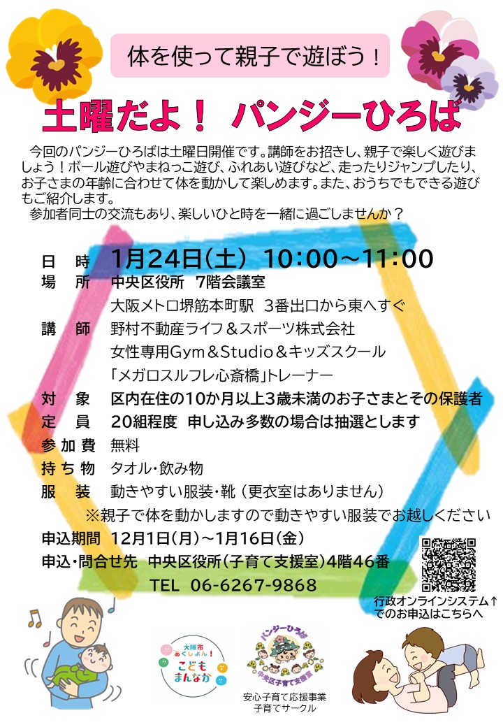 場所:中央区役所3階 プレイルーム(場所が変更になる場合はホームページでお知らせします)