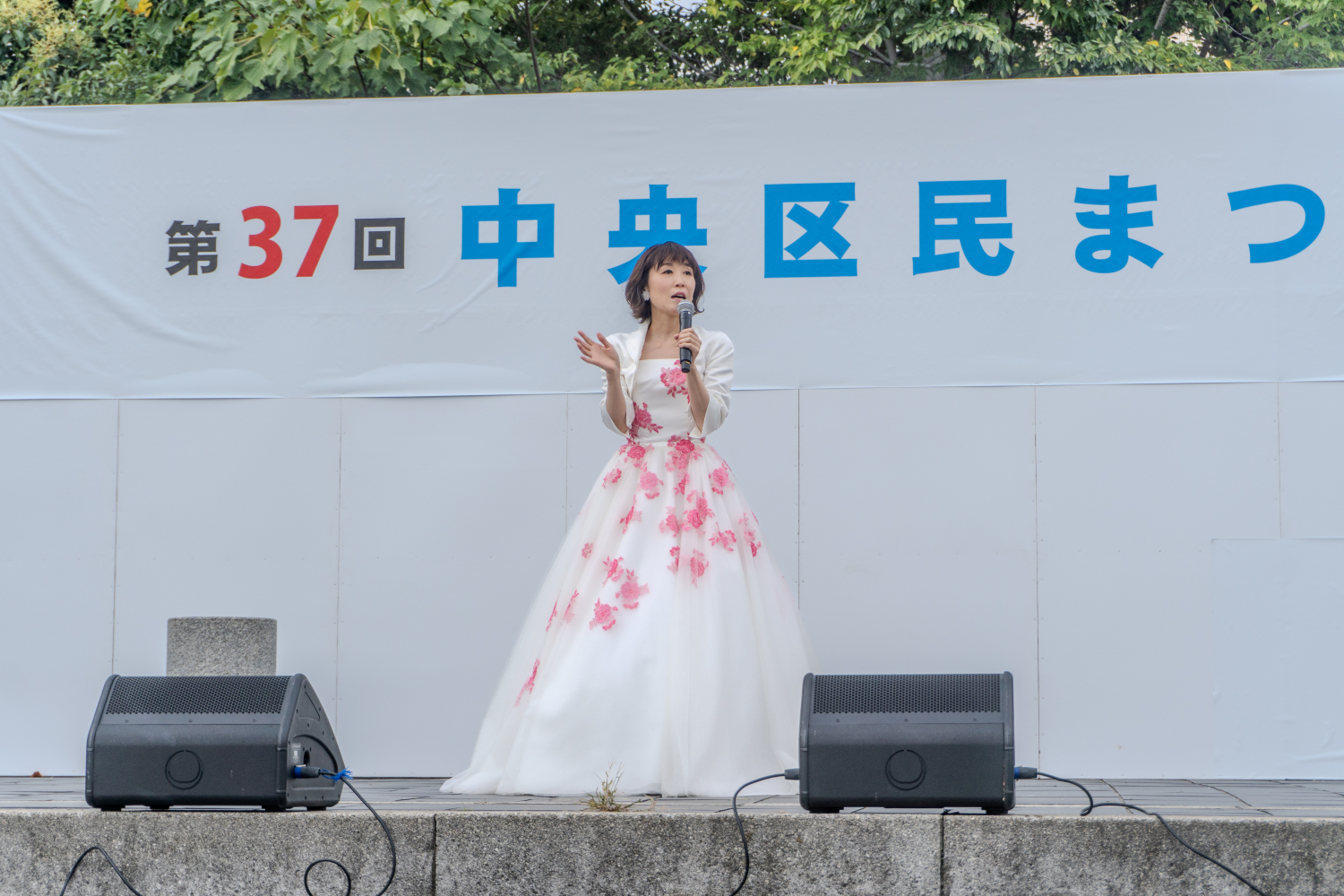 式の後は、中央区民まつりの会場である難波宮跡公園に移動していただき、歌とトークで来場の皆さんを楽しませていただきました。