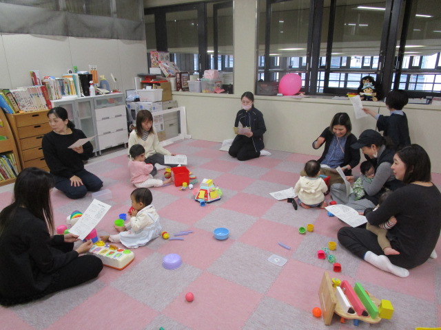 保健師からは「こどものこころを育てよう」をテーマにお話を伺いました。 「ことばを話すちから」を育むためには、「からだづくり」と「こころ育て」が土台となり、とても大切だという内容でした。 これから気候の良い季節になりますので、親子でたくさんふれあい、体を動かしながら「からだづくり」「こころ育て」していただけたらと思います。