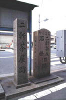 the 40th year of Meiji. There is a road at the eastern side of the monument, running from the north to south, is the site of the Nekomagawa river which was used as a canal situated at the east side of the Osaka Castle. The stone bridge was over the road in the 8th year of Houei (1711) or 3rd year of Keian (1650), which was named Kuromonbashi (bridge beside the black gate). The stone stuff of the monument is the remnant of it. Kuromon was derived from the name of "Tamatsukuri Mon (gate)" of the Osaka Castle and it was painted black. This gate was moved to the Isshinji temple after the Summer battle of Osaka Castle but was burned to ashes in the World War. |