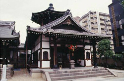 3rd year of Horeki(1753). The temple was famous for its cherry-blossoms in the precincts but the trees died suffered from a flood of the Yodogawa river in the18th year of Meiji. The temple bell has an inscription "the 10th year of Taihei (China,1030)" made in Korea. It is a masterpiece made in the early years of Korai and was designated as the important cultural asset. It is unknown why and how the bell was brought over to Japan but was found in the region of the Mouri clan (Yamaguchi Prefecture) under its construction work and was later contributed to the temple. Among other properties was a Senju Kannon portrait made in the last years of Kamakura period (a tangible cultural property of Osaka Prefecture). |