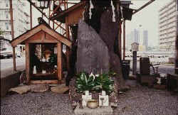 highered and conspicuous. There is a gravestone composed of five pieces piled up one after another standing which has an inscription that it was made in the 3rd year of Jyokyo(1686), so this place is thought to be an old tomb but it was unknown who was buried. People around here call it Uguisuzuka. It has a tale told of a bush warbler. |