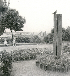 used for a timber yard was reclaimed here. The artificial hill has an area of some 11ha, a height of 35m, which was named “Showayama”in the 45th year of Showa. There are five, large and small hills that command a view of the harbor and subtropical plants such as a cycad and all kinds of trees are planted along the park road. There are as many as 50,000 azaleas worthy to be specially mentioned and it becomes the scenic spot now. The large Minato Ohashi Bridge is seen before your eyes. This area is a substantial park equipped with an open space for sports and a gymnasium. There is a sidewalk like a character L in the shade of trees from this park to the west, Izuo Park, which is a place of recreation and relaxation for the citizens to match with high dwelling houses nearby. |