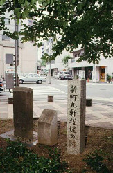 about Meireki (about 1656). In those days it was only one licensed quarters in Osaka. It was said that the name of Kukenmachi was derived from Kuken Chaya (nine tea shops) that had been located at Tamatsukuri and were moved here. The Yoshidaya that was famous place where courtesans were gathering and often found in the works of Saikaku, Chikamatsu survived around here until the War. Kukenmachi was famous for its cherry blossoms. |