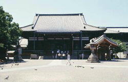 his hermitage in the first year of Bunji(1185). The priest Honen also practised the meditation of the sun, “Nissokan”, at this temple. There was a black, front gate and a room with 8 windows for tea ceremony which Kobori Enshu was fond of, but all there buildings were burned down by the War. The ashes of the dead across the country are housed in the temple, so the image of Amidabutsu made of the ashes of the dead are worshipped. There are many graves of well-known figures in the cemetery. Among others the grave of Honda Tadatomo is famous for its miraculous efficacy to prevent being a bad drunk. |