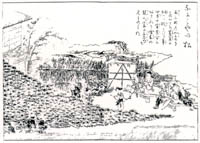 | The site of Komachichaya The tea-house was situated on the west side of the southern end of the Oharaibashi bridge , which was crossing over the Hosoe River running through the Koshu Road . It survived in the middle of the Meiji era and was prosperous for travellers coming and going along the Road to have a rest at the site . A girl who was the draw at the house served with a teacup on a long ladle to keep out of mischief and became popular for this manner . The site of Naniwaya Kasamatsu There was another tea - house called Naniwaya at the east side of the Road , situated around 50 meters away toward south from the Komachichaya and was prosperous for selling Anmochi ( rice cake filled with sweet bean paste ) .There were old, two big and small pines flourishing in their garden as if creeping over the ground . The pines resembled umbrellas . Those who came and went along the Road called them Kasamatsu and made it a rule to drop in to have a look at Kasamatsu The famous old pines perished at last in the 20 th year of Showa. |