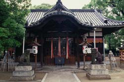 | 安閑天皇・聖徳太子ほかを祭る。これは安閑帝はしばしば当地に行幸、牛を放牧して開発をはかり(『日本書紀』)、聖徳太子は四天王寺を最初当地に建立を計画したことによるものという。当社には鎌倉初期の太子画像を蔵し、また地名も天王寺庄がある。 かつて社殿は淀川に面し、うっそうとした森林に囲まれて「大宮の森」といわれていたが、明治33年、淀川改修ですべて新淀川の河川敷になり、現地に移転した。それまでは、この森は淀川を遡行する船の恰好の目標になり、この森を見て帆を上げ下ろししたという。 |