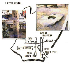 现在的天下茶屋公园是是斋屋的旧址,公园东囗的旁边树有石碑。药房是斋屋是宽永年间(1624~1644年)因近江国的津田宗右卫门来到面向住吉干道这块地方,并做起一种叫「和中散」的药的买卖而起源的,因往来于干道的旅行人很多而买卖兴隆。此外,这里还是个著名的茶屋。