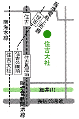 作为航行之神·驱妖之神·歌之神,是一个自古以来就为人们所崇拜的大神社,4栋正殿的屋顶盖有扁柏皮葺,有山形山墙并在上墙上开有门,被称为「住吉式建筑」。现存的建筑是文化7年(1810年)建造的,因为其具有特色的神社建筑而被指定为国宝。院内有600余座石灯笼,这些都是大阪、 、以及全国的商人们所奉献的。此外,反桥(半圆形拱桥)是从镰仓时代以前就有的这一事实,根据古书的记载已得到确认。主要的祭礼与神事有众所周知的5月「卯之叶神事」、6月14日「御田植神事」、从7月30日到8月1日的「住吉祭」等。在占地面积3万坪的院内,有重要文化遗产石舞台、南门和东西乐所等。因「田植舞」和「住吉舞」而是有名的「御田植神事」,于昭和54年(1979年)被指定为重要无形文化遗产。 |