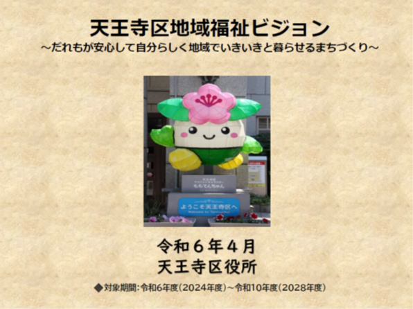 なお、「大阪市地域福祉基本計画」は、各区の地域福祉計画(地域福祉ビジョン等)と一体で、社会福祉法第107条に基づく「市町村地域福祉計画」を形成するものであり、基本理念や市域全体で実施すべき基礎的な取り組み等を示しています。