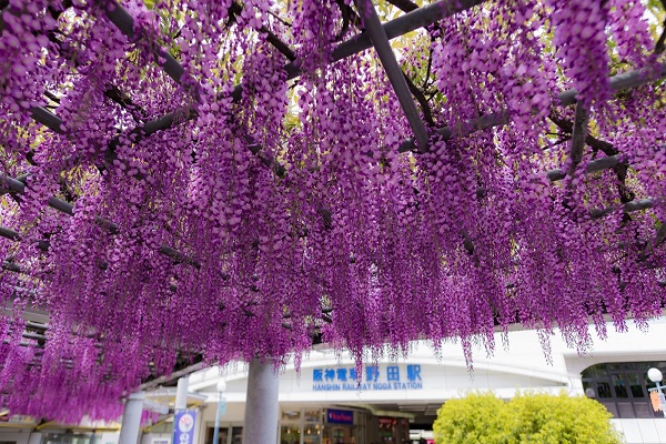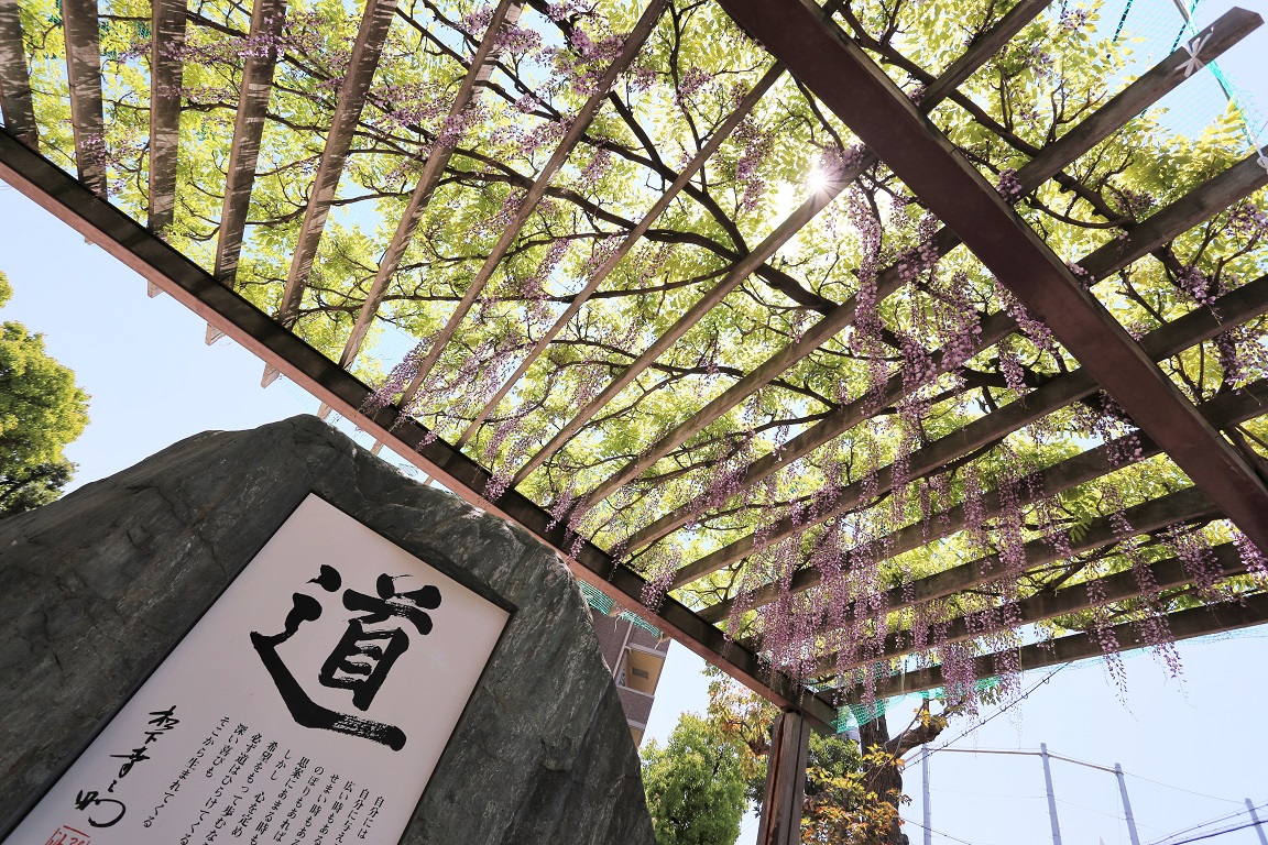 福島区内では「のだふじ」の開花が一番早い大阪大開郵便局や松下幸之助創業の地記念碑と藤棚のコントラストが美しい大開公園など、大開方面にある「のだふじスポット」を巡るコースです。