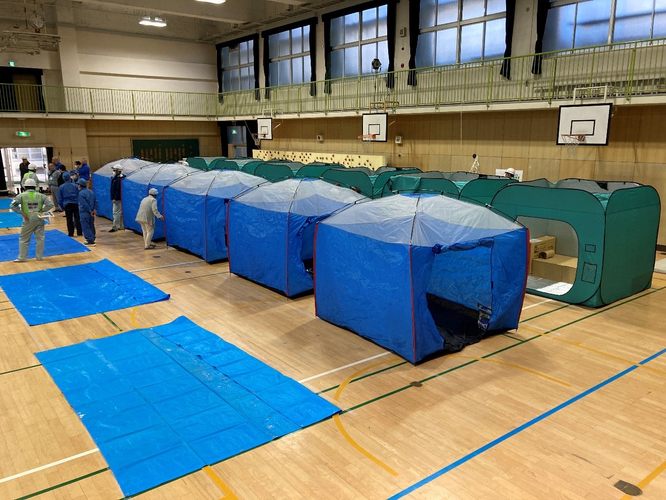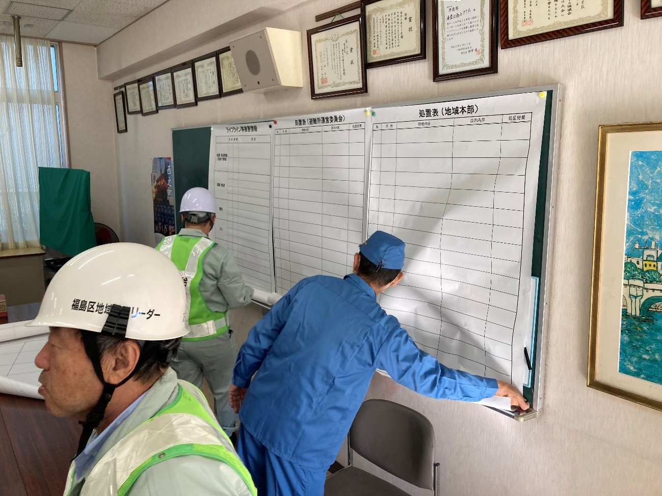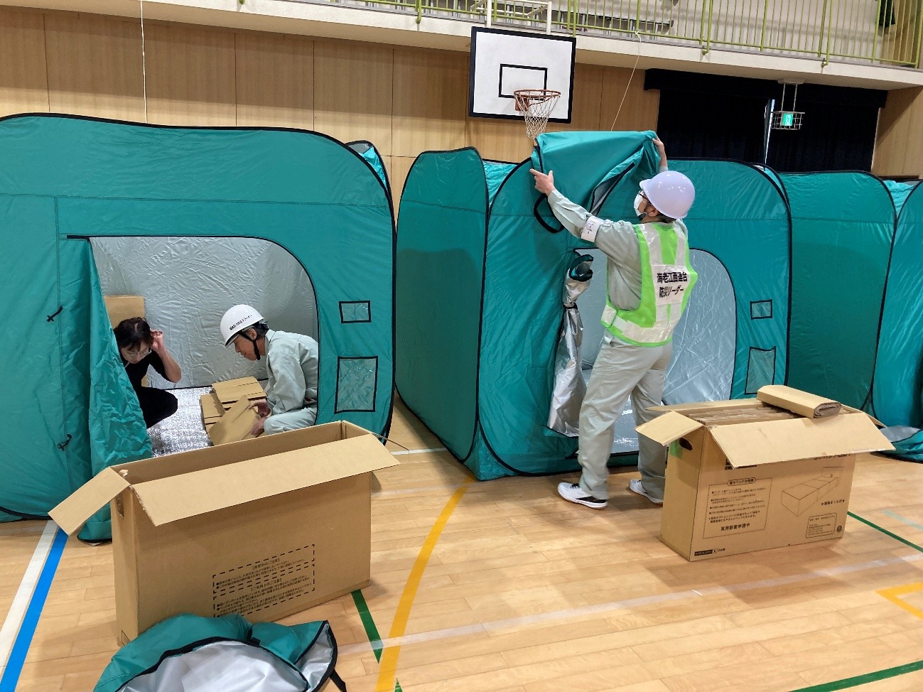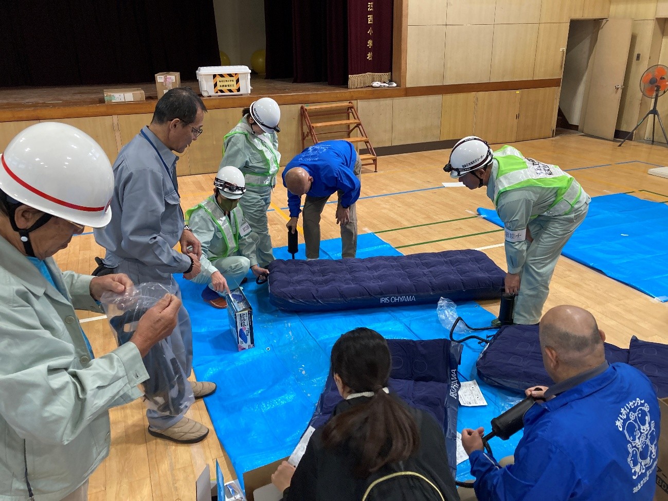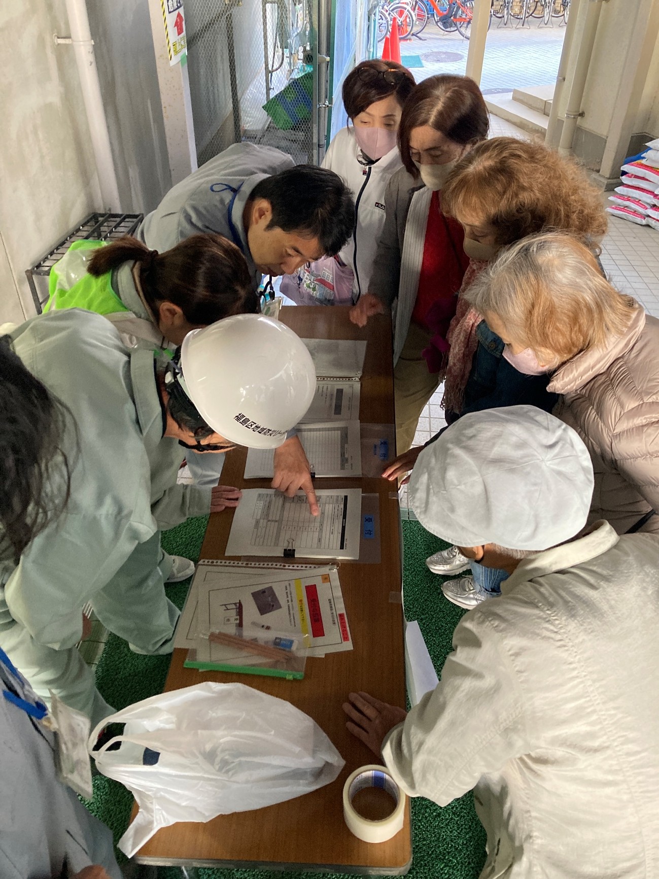 訓練は午前8時30分に直下型地震が発生した想定で実施。参加者のみなさんは自宅等の安全を確認し、午前9時に災害時避難所に集合し、避難所開設キットを活用しながらアクションカードの手順に従い、建物の安全点検から地域本部や避難スペースの設営に取り組んでいただきました。