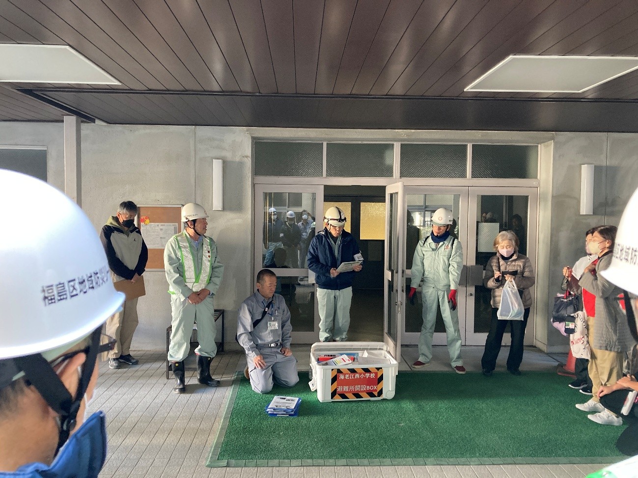 令和7年11月16日(日曜日)、海老江西地域自主防災組織のみなさんが、海老江西小学校にて避難所開設訓練を実施しました。