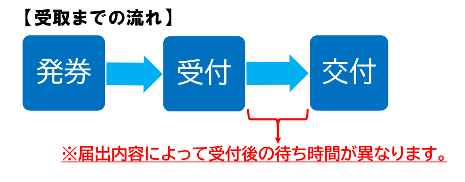 「待ち人数」は発券から受付までの人数です。受付から交付までの待ち人数ではないことをご承知おきください。
