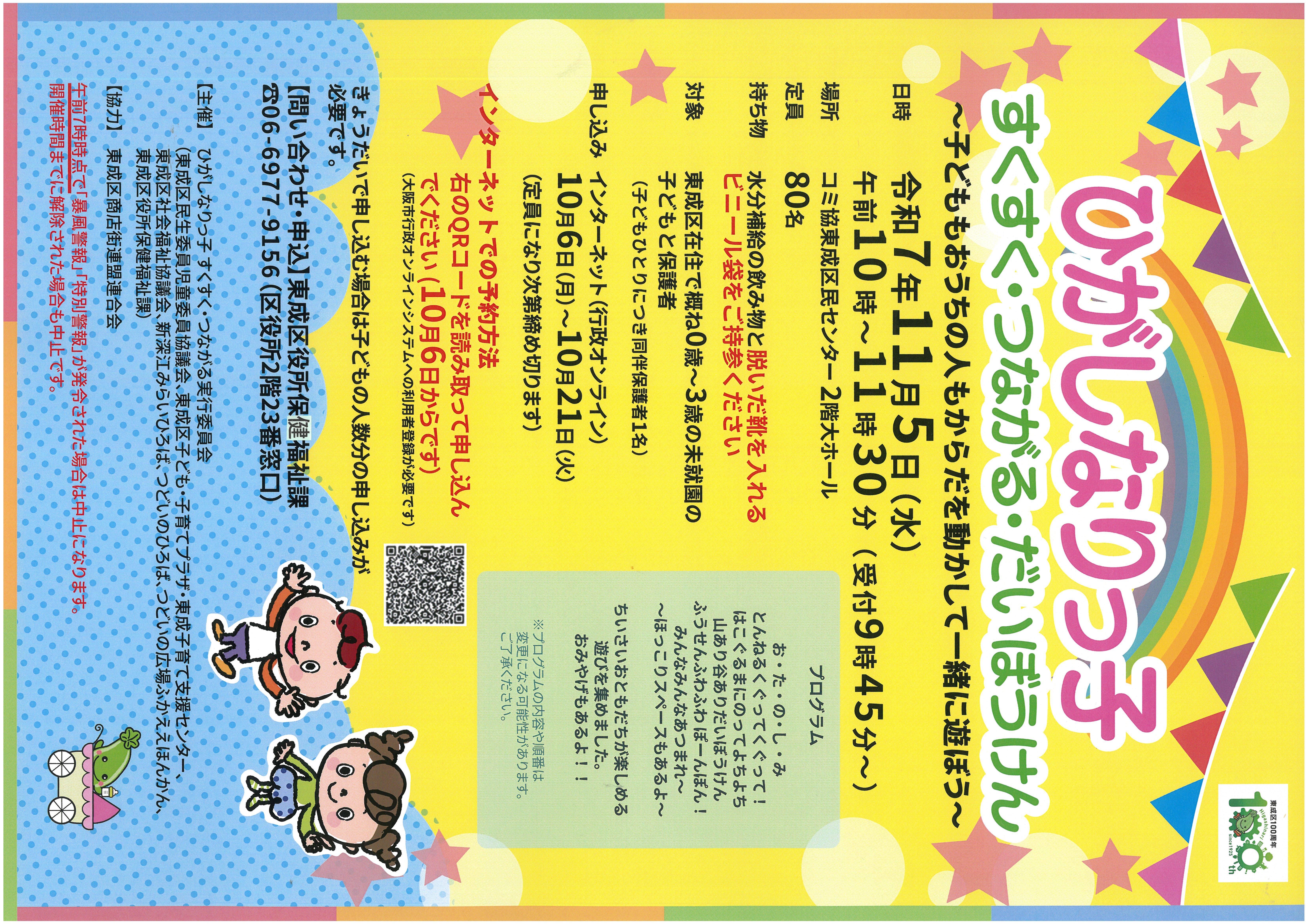 ひがしなりっ子 すくすく・つながる だいぼうけんを開催します(事前予約制)
