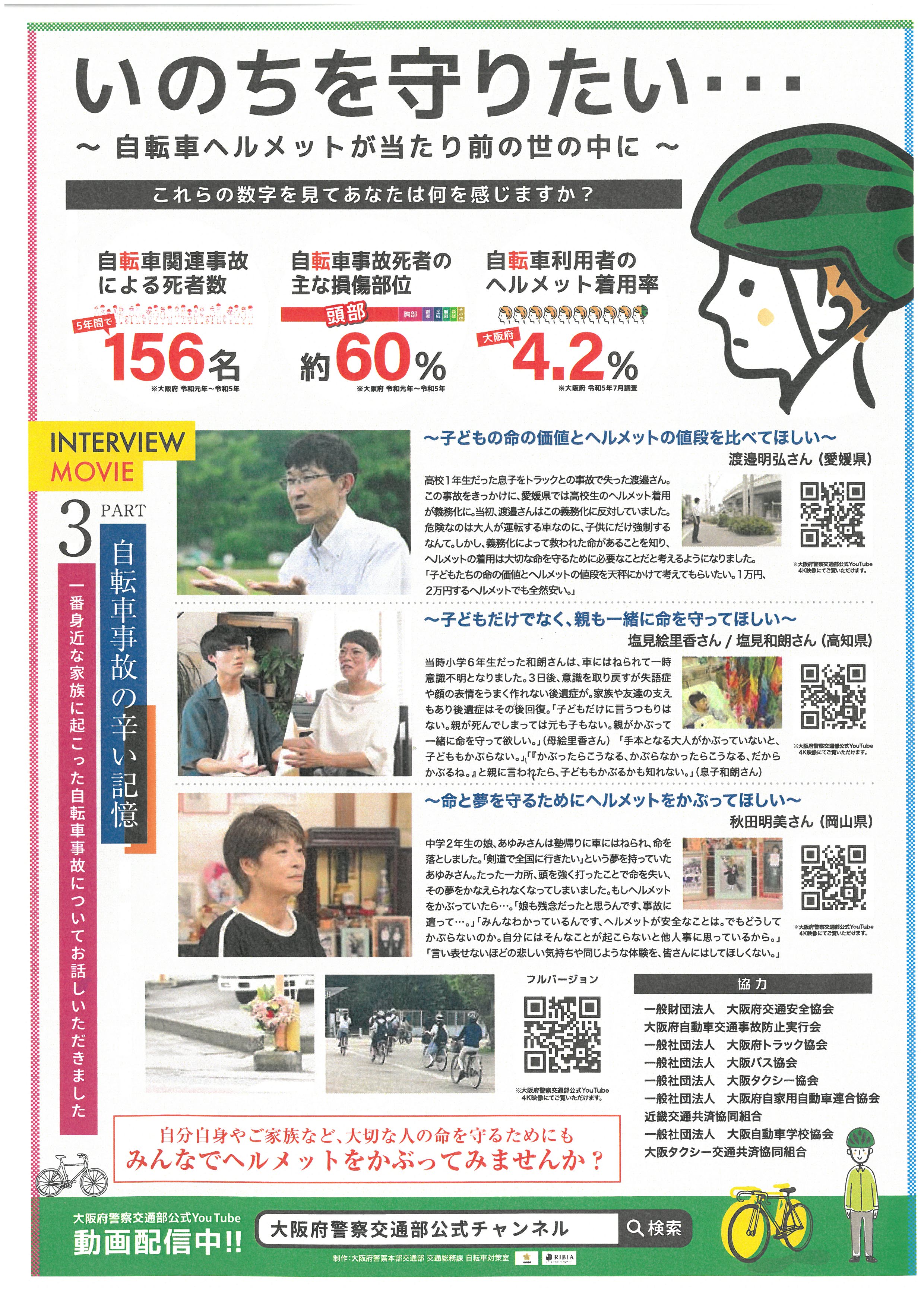 自分の命を守るために自転車乗車時はヘルメット着用しましょう。