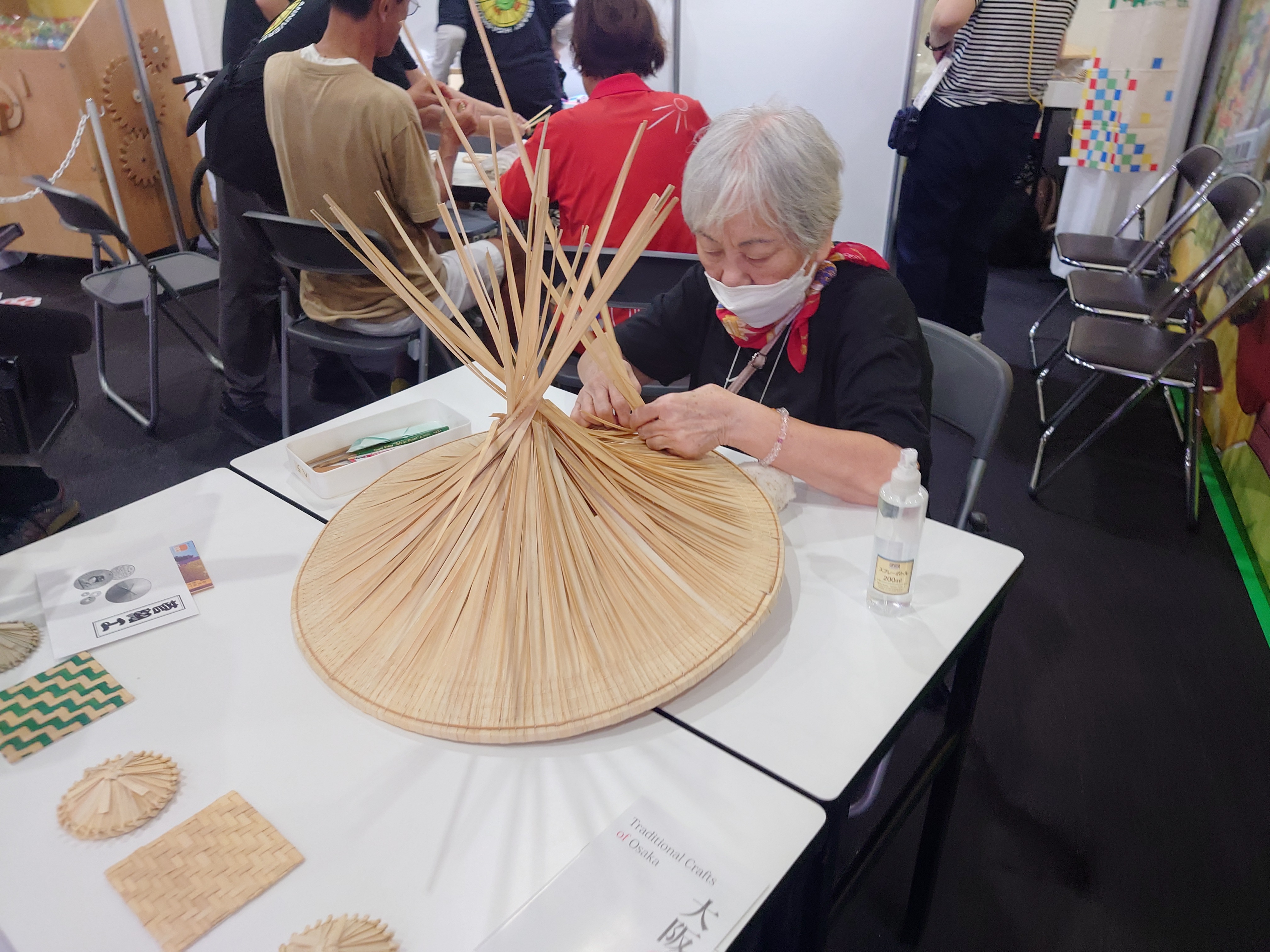 2025年9月13日(土曜日)から9月15日(月曜日)に大阪・関西万博で開催された「地域の魅力発見ツアー ~大阪43市町村の見どころ~」の「みなはれ」コーナー、9月13日(土曜日)の「やりなはれ」コーナーに深江菅細工保存会が出展しました!