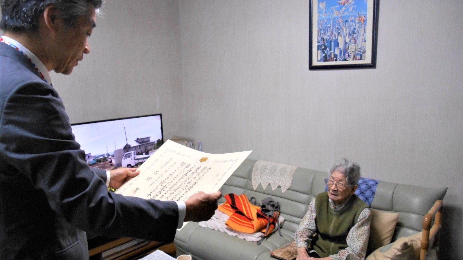 今年度、区内で百歳を迎えられる14名の皆さまに、内閣総理大臣からのお祝い状と記念品をお届けしています。