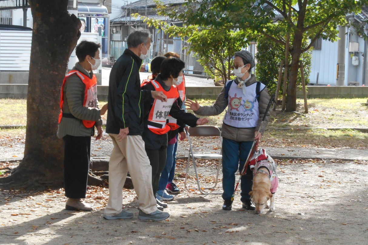 「声掛け訓練」は、認知症の方や視覚・聴覚に障がいのある方や外国籍で日本語が不自由な方など、困っている人に出会ったときに、どのように声をかけたらいいのか考え、実践してみようという訓練です。