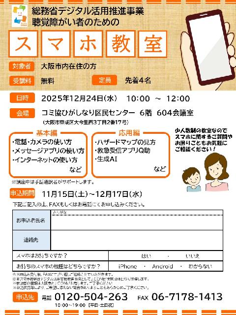 聴覚障がいをお持ちの方向けスマホ講習会を開催します