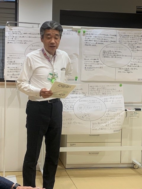 町会長さん、民生委員さん、食事サービスの皆さんなど、地域福祉を支える方々のグループワークを聴かせていただきました。