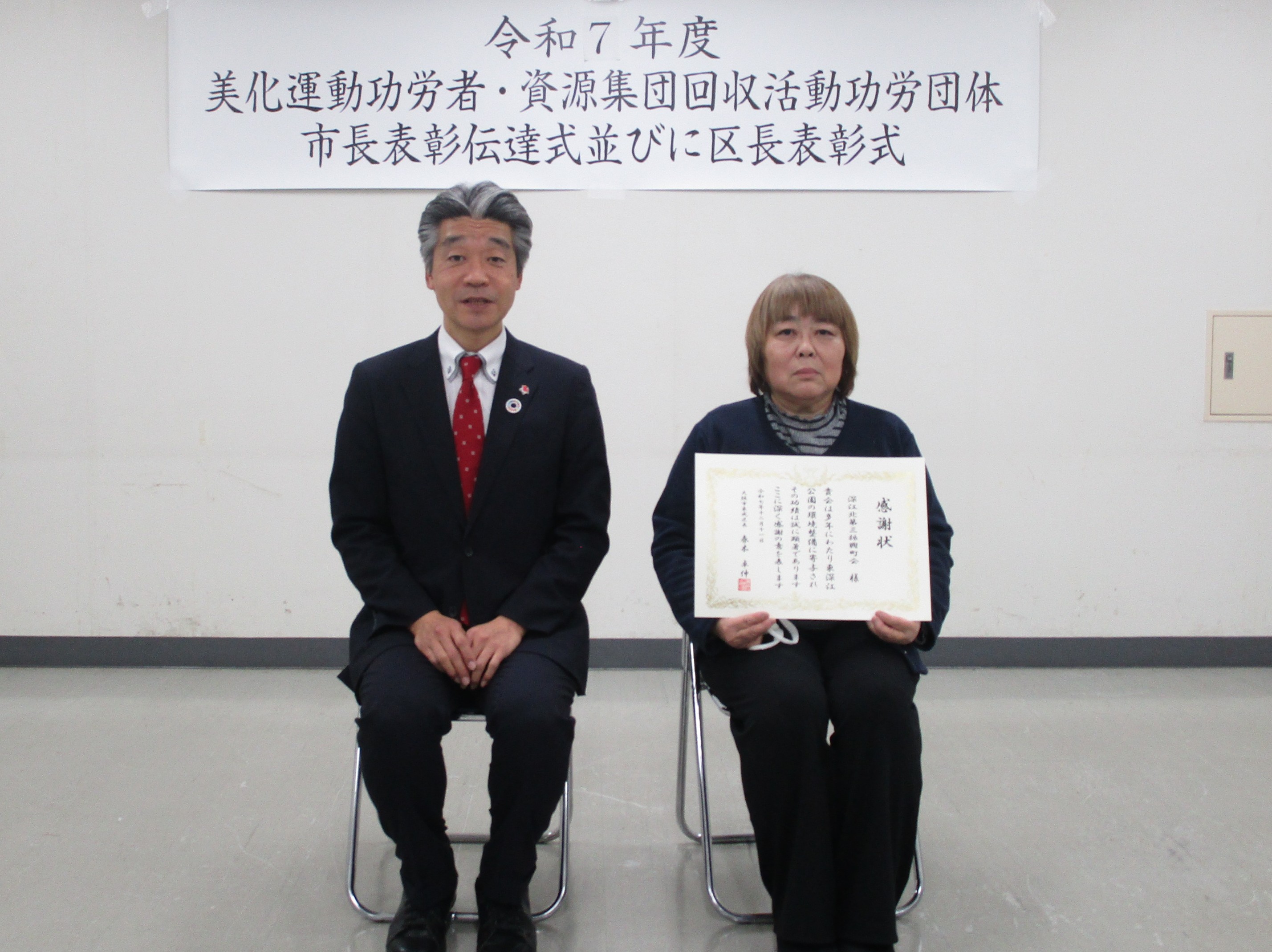 昨日(12月11日)、資源集団回収活動に長年取り組んでおられる団体の市長表彰伝達と、公園の美化運動に尽力いただいている町会への区長表彰を行いました。