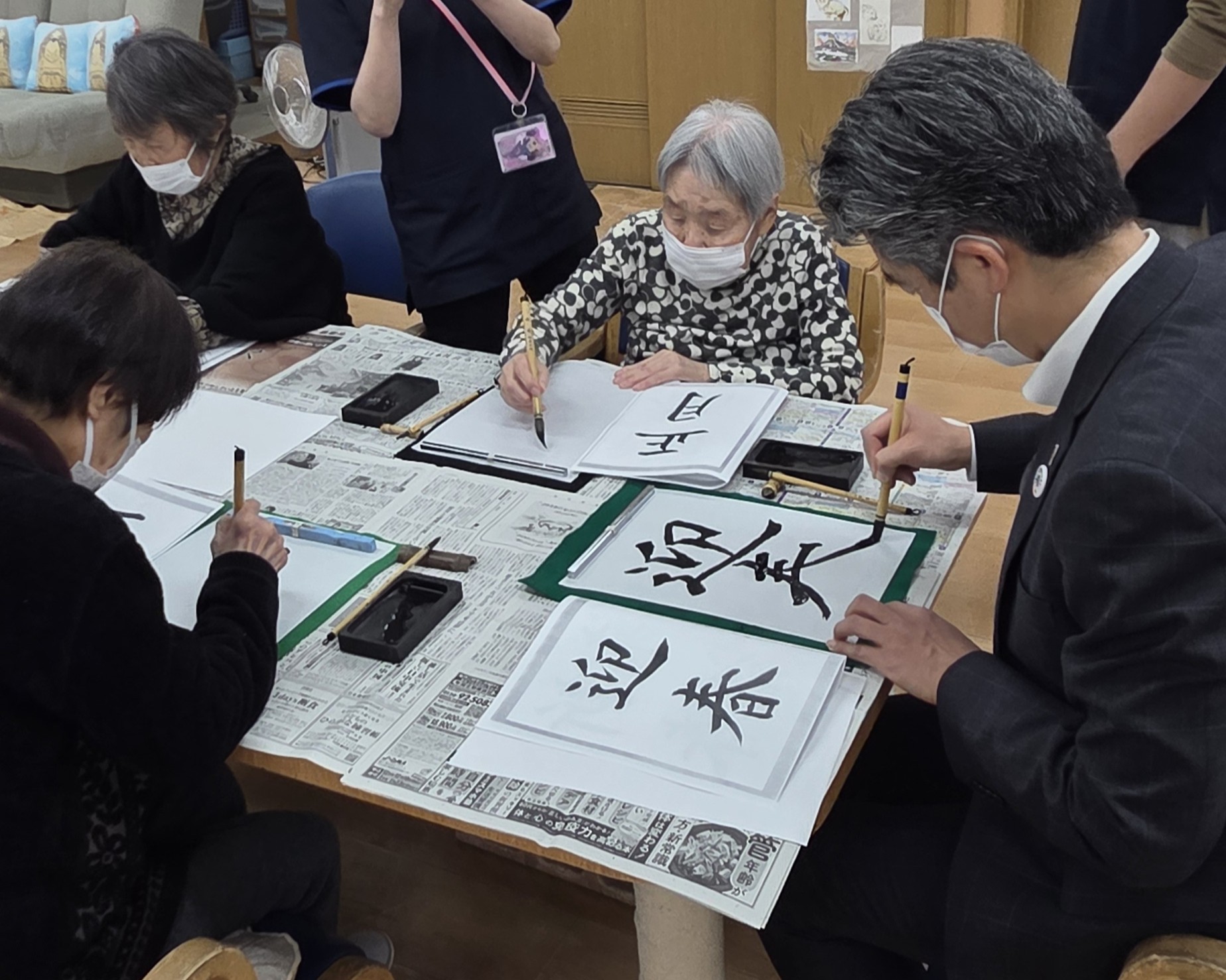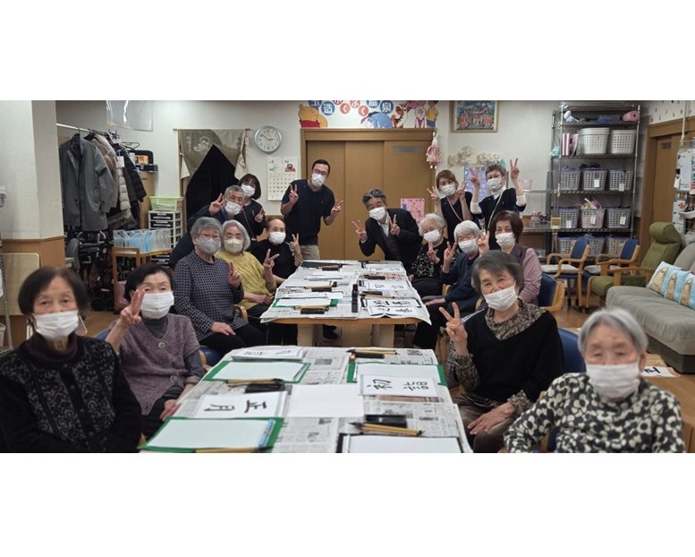 新年らしく書初めをされたり、レクリエーションでは笑い声があふれたりと、