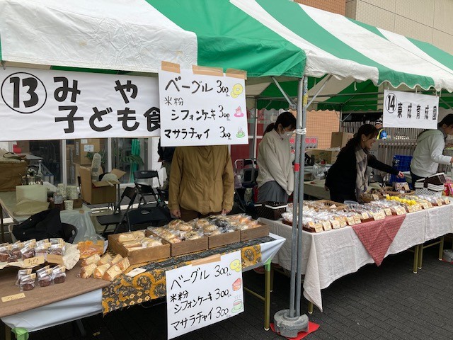 区民センターの外では、東成区内の福祉事業所や協力団体の皆さんが多彩なブースを準備していただき、多くの人でにぎわいました!