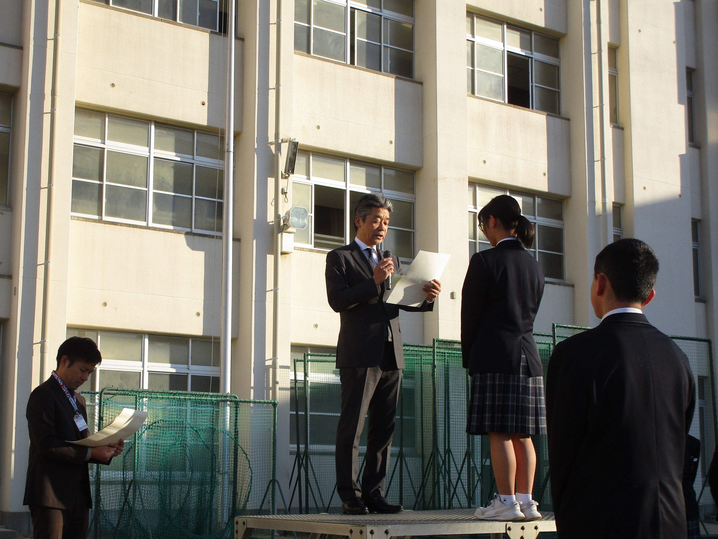 小学生に表彰状をお渡しするのとちょっと違って、中学生は少し恥じらいまじりの誇らしい表情をされますね。