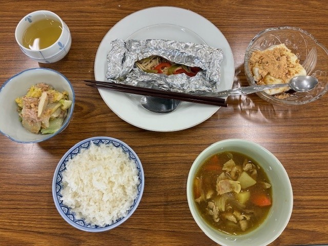 参加者は8名と少人数でしたが、「定年退職後に料理教室に通いたいと思って、その第一歩に」と参加された方から、毎年のように来てくださるベテランさんまで一緒になって、和気あいあいと料理し、楽しく食事をしました。