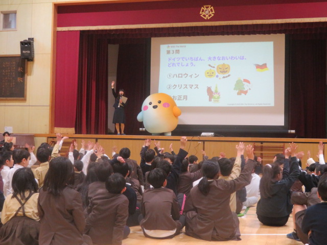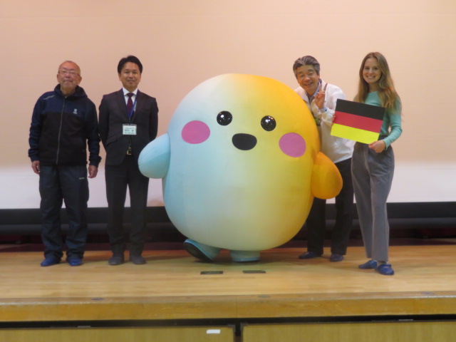 大成小学校では万博開幕前から「万博国際交流プログラム」の取組みでドイツとの交流を重ねており、今回はドイツ総領事館の方と、万博キャラクター人気1位の「サーキュラーちゃん」をお迎えしました。