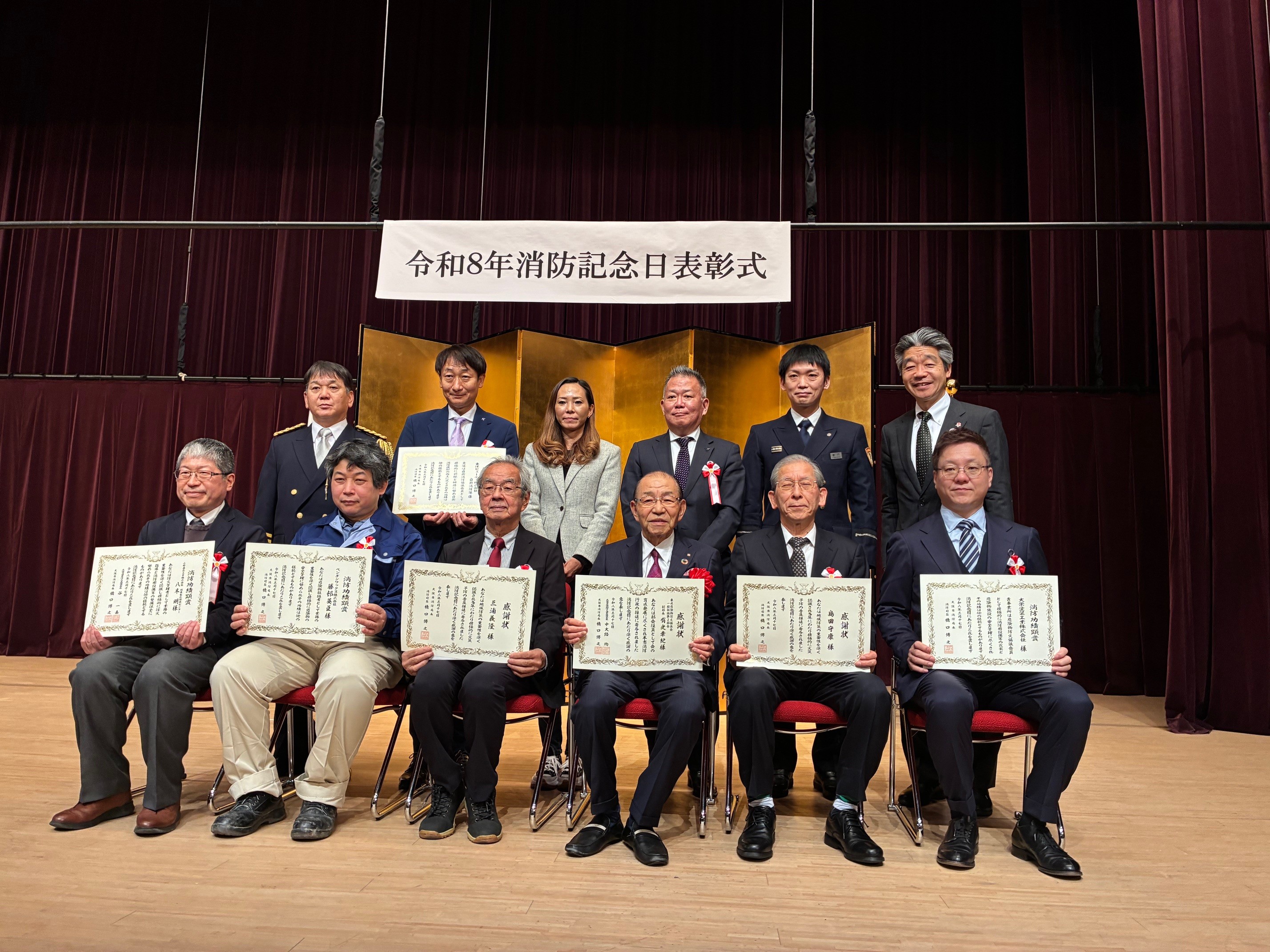 今日は、地域の防災や消防活動に日頃から尽力されている団体や個人の皆さんが表彰されました。