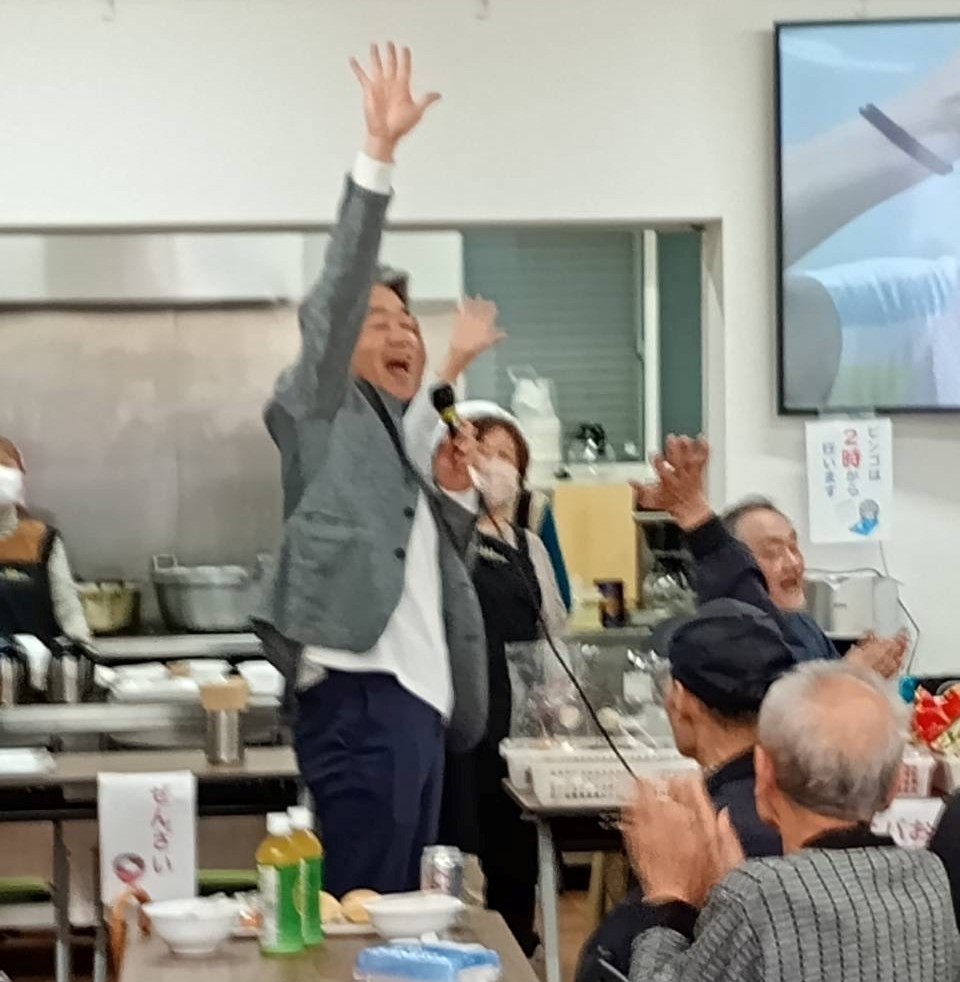 約60人の地域の皆さんが集まり、東小橋北公園の満開の桜を眺めながら、カラオケやビンゴで大盛り上がり!