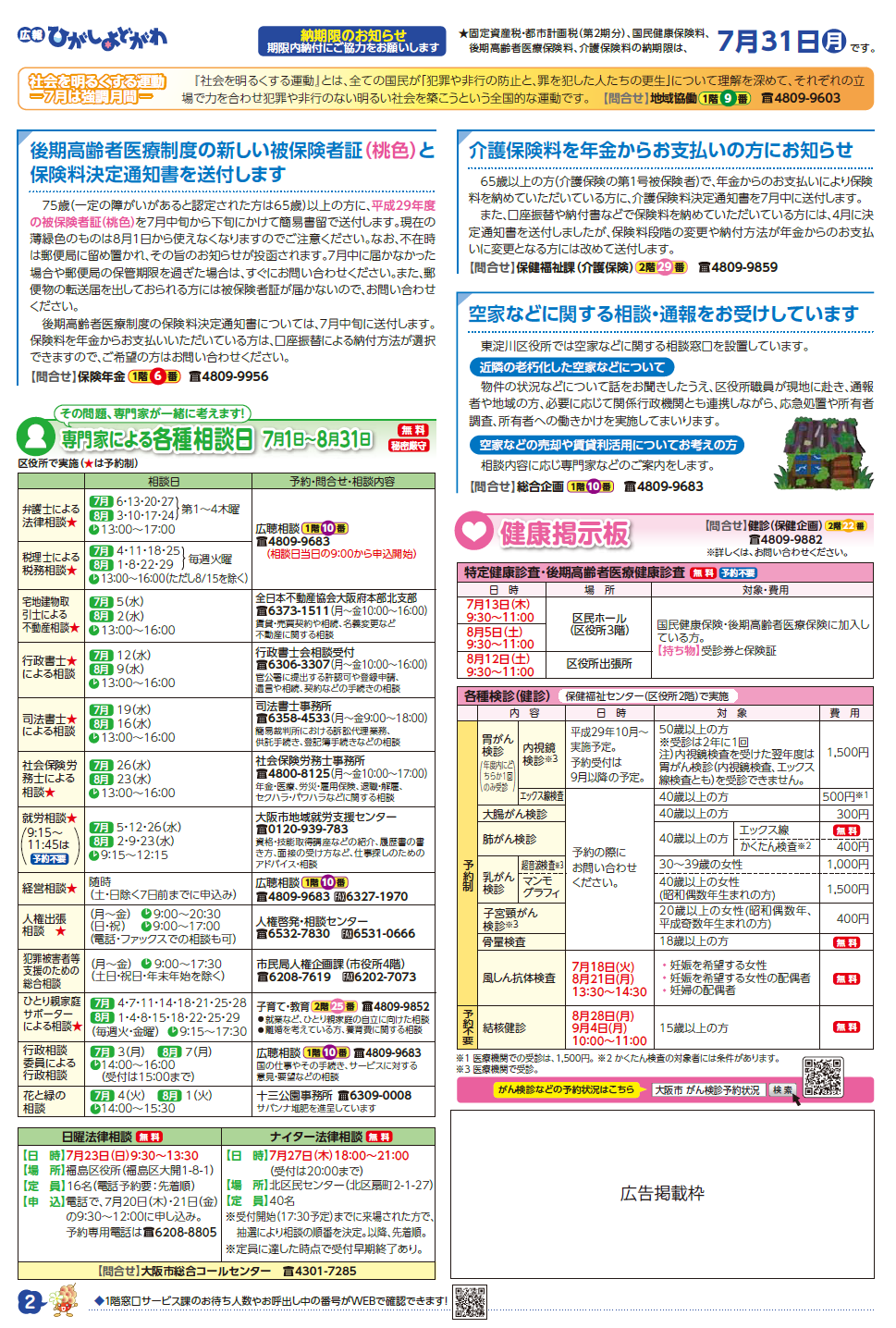 広報ひがしよどがわ7月号 おおさか掲示板欄外(3・4・5面) 音声版