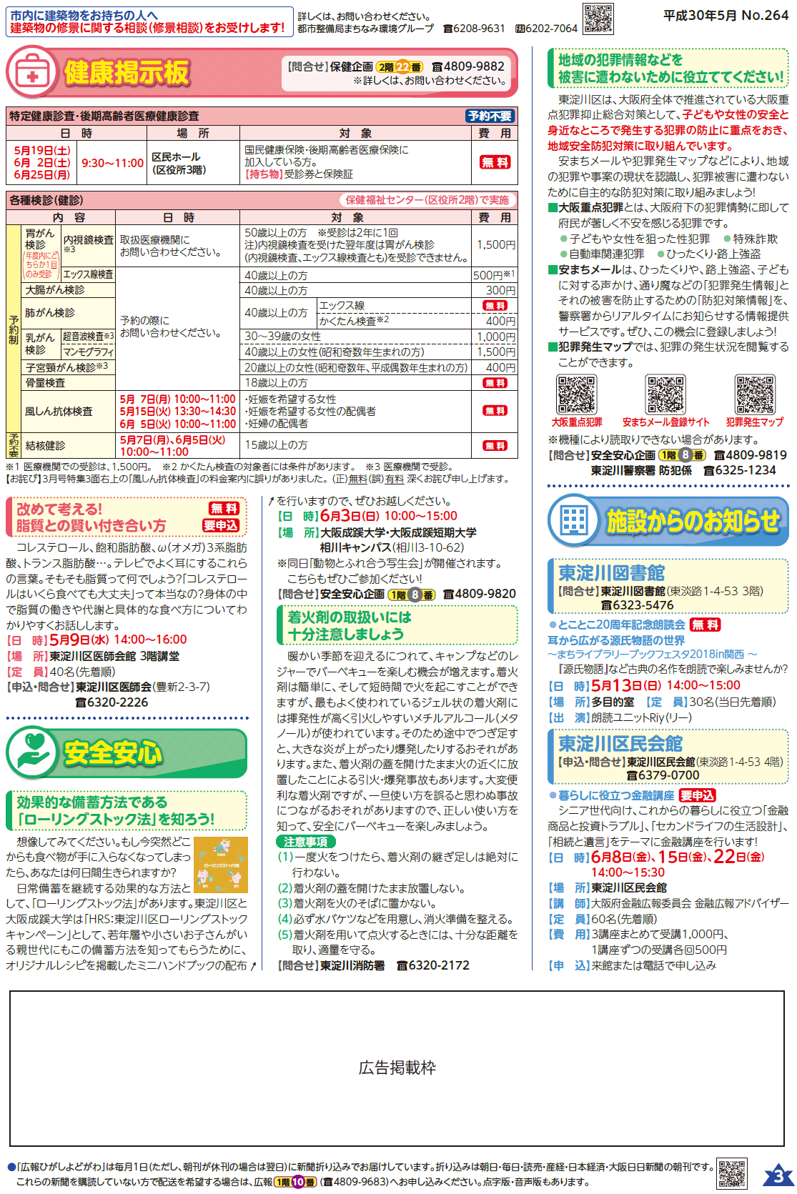 広報ひがしよどがわ5月号 おおさか掲示板欄外(5・6・7面) 音声版