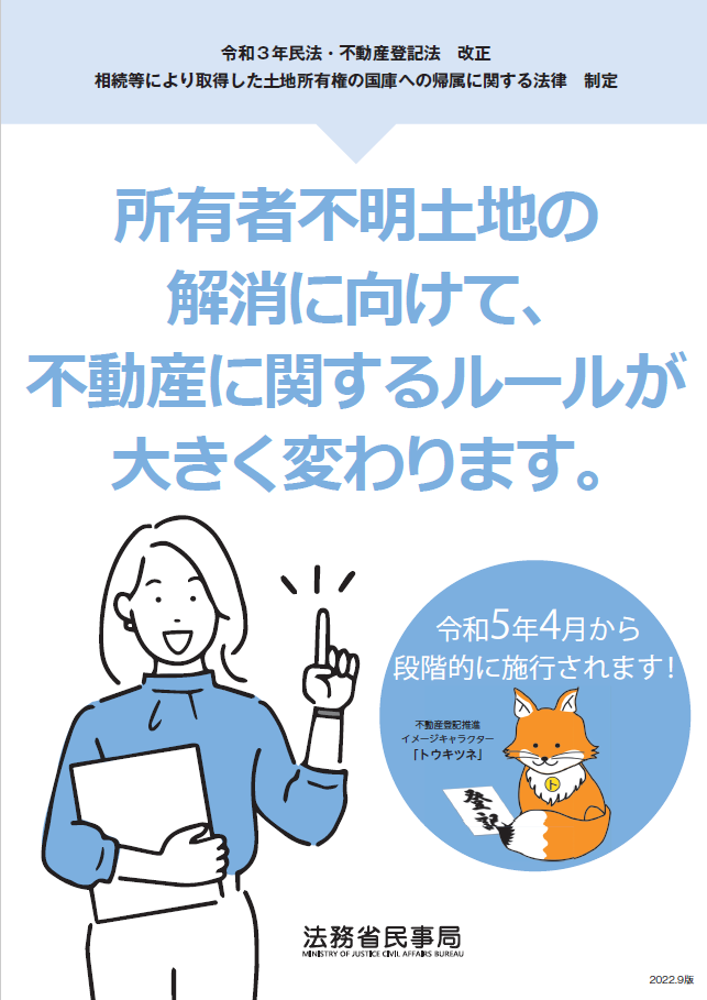 令和3年4月21日、「民法等の一部を改正する法律」(令和3年法律第24号)及び「相続等により取得した土地所有権の国庫への帰属に関する法律」(令和3年法律第25号)が成立しました(令和3年4月28日公布)。