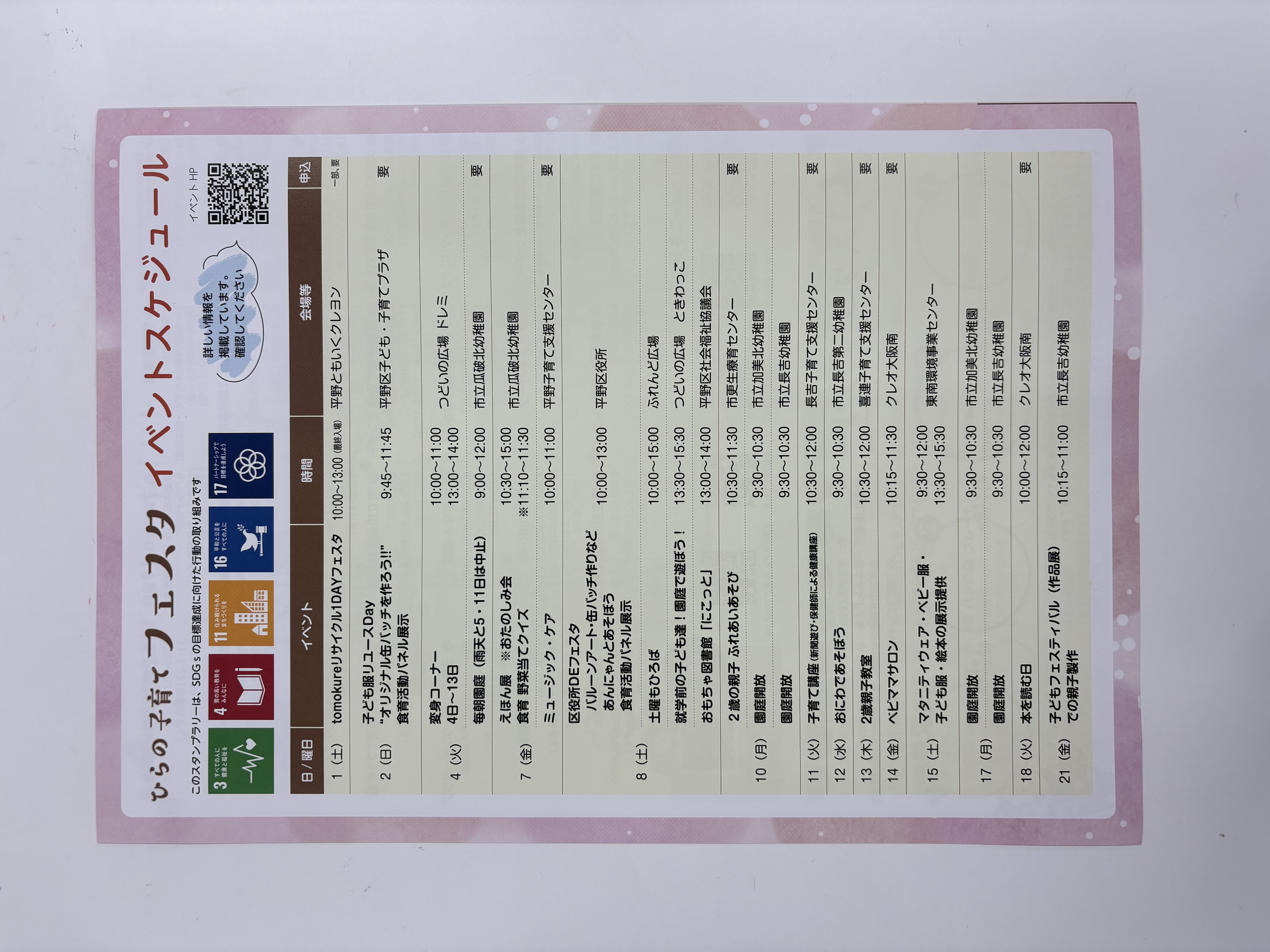 子育てに関する平野区内のイベント等の情報をお知らせします。
