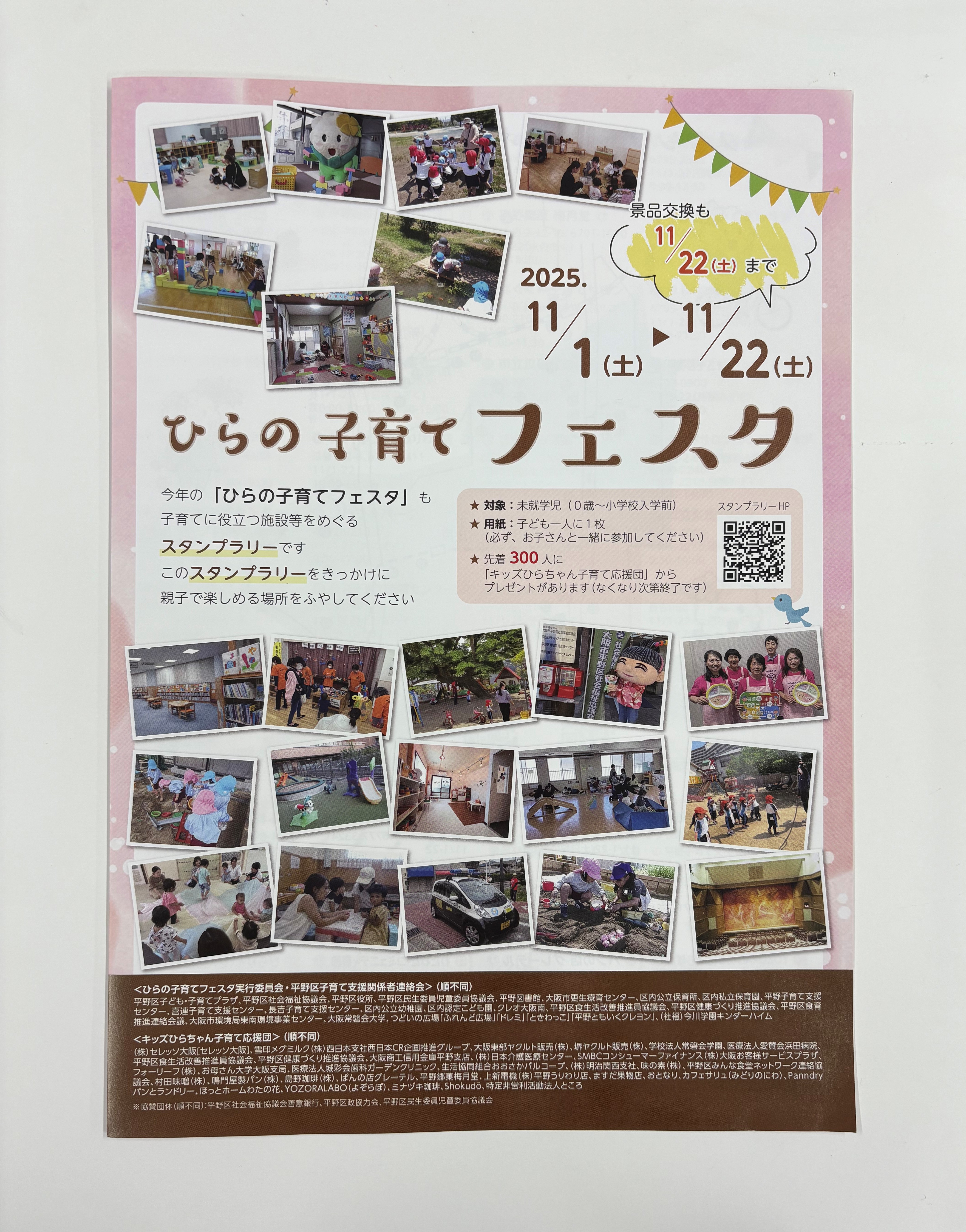 また、スタンプラリーシートをお渡しできるところ等を載せていますので、詳しくはつぎの「ひらの子育てフェスタ ホームページ」をご覧ください