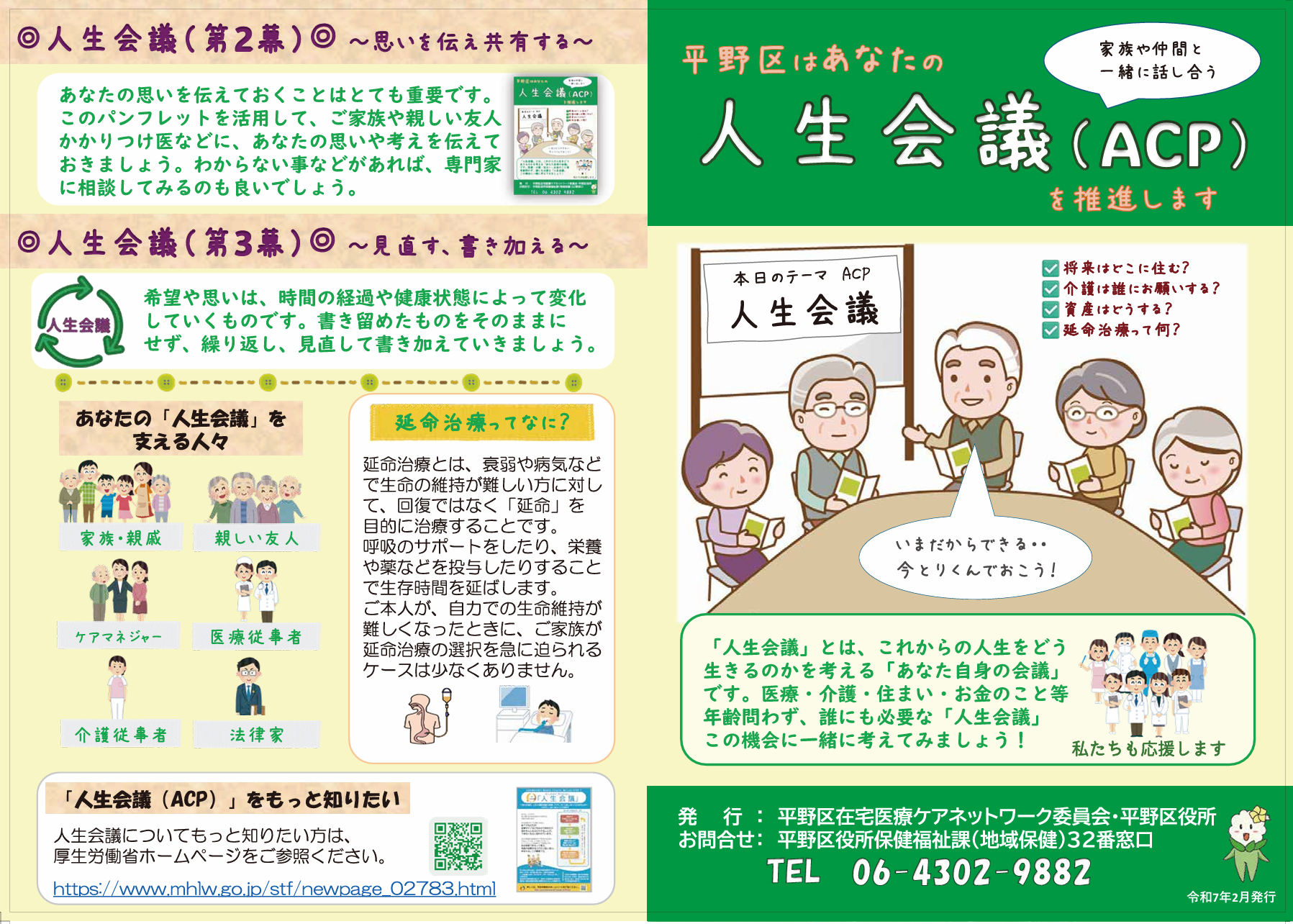 平野区では、平野区版人生会議(ACP)リーフレットを3階32番窓口にてお渡ししています。